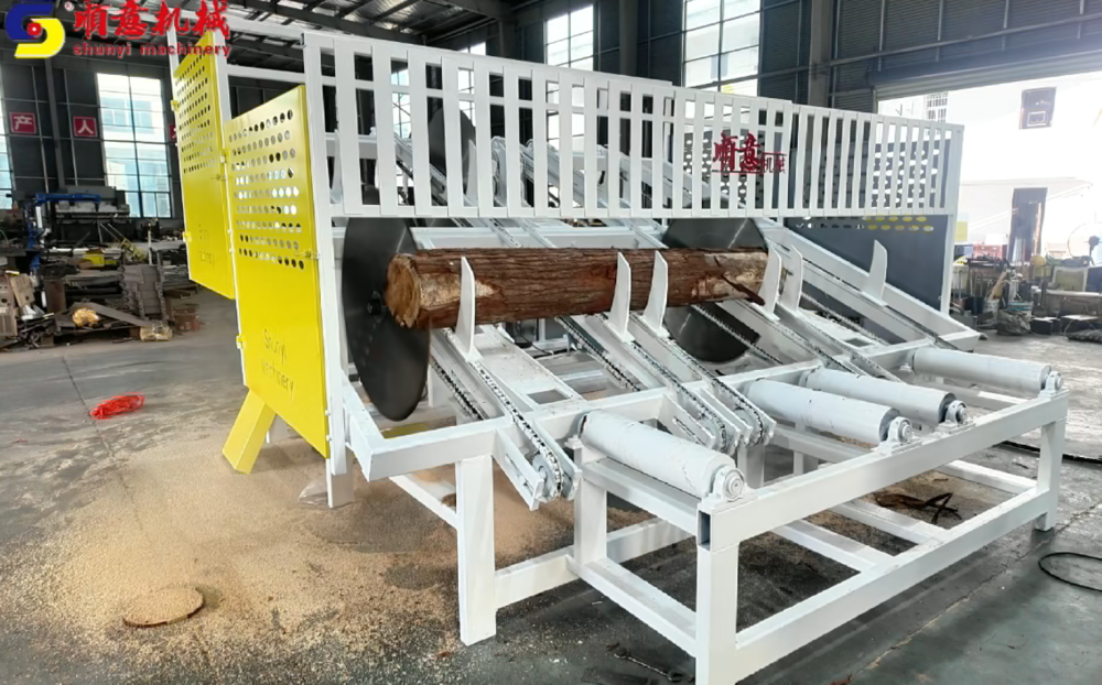 The Automatic Log Cut-off Machine equip two sided movable saw blades, which make the length changes come ture when you have differents length requirements.